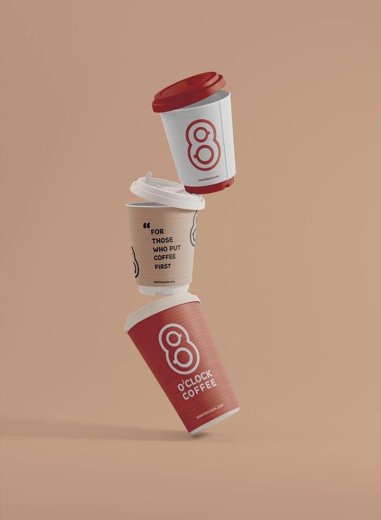 I reworked the logo by shaping an eight and replacing its inner circle with coffee cups to align with the brand's aesthetic. To keep the vibe cozy and friendly, I chose a softer typeface. I stayed true to the original colors, applying them to refresh the coffee bags and cups. The design is modern and simple, with white typography to stay on trend.
